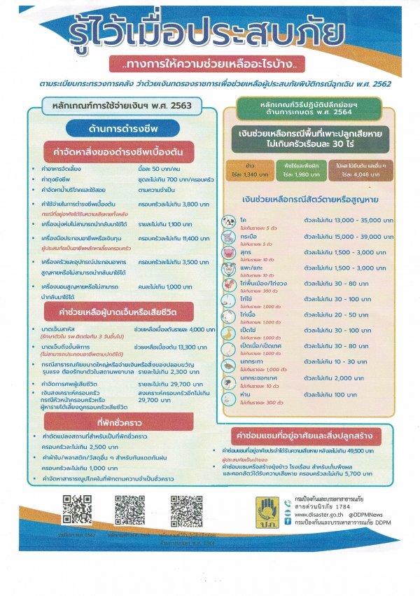 ประชาสัมพันธ์ เรื่อง สิทธิการได้รับความช่วยเหลือ หลักเกณฑ์ และเงื่อนไขในการให้ความช่วยเหลือผู้ประสบภัยพิบัติด้านต่างๆ
